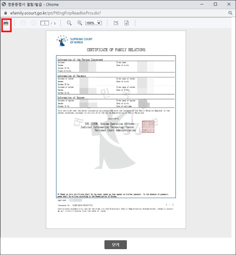 대한민국 법원 전자가족관계등록시스템ED[1/6]